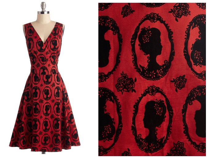 I love cameos more than I can even explain. I mean, just look at my Pastel Carousel banner. So of course this dress would be PERFECT for me. And it’s an amazing shade of red. So that makes it another awesome Christmas dress. But if you’re looking for something a little bit different, here’s a zombie cameo dress that’s also amazing.