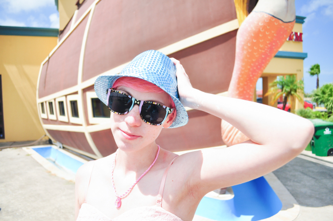 dress – Unique Fashion in South Padre Island, Tx | sunglasses – Target | hat and shark’s tooth necklace – souvenir shop in South Padre Island, Tx | sandals – Target