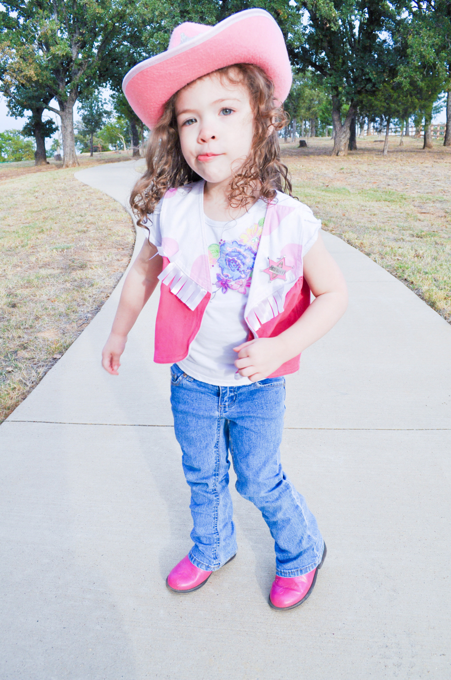 Sheriff Callie. So here’s the thing. I was having a hard time coming up with a costume for her that year. She kept wanting to be “Daniel Tiger’s Mommy” and I was lost as to how to achieve that idea. (I considered buying a Daniel Tiger costume and sticking a dress on over it…) So Jeremy and I made a trip to Toys ‘R Us and saw this beauty sitting there (not with the other costumes, go figure) and I found the pink boots at Target. So…yep. And yes I know that Sheriff Callie has a brown vest and not a pink one, but it’s close enough. And she was thrilled. We did have to buy her a different badge because she totally lost the one that it came with.Pastel Carousel - Halloween - Sheriff Callie CostumePastel Carousel - Halloween - Sheriff Callie Costume