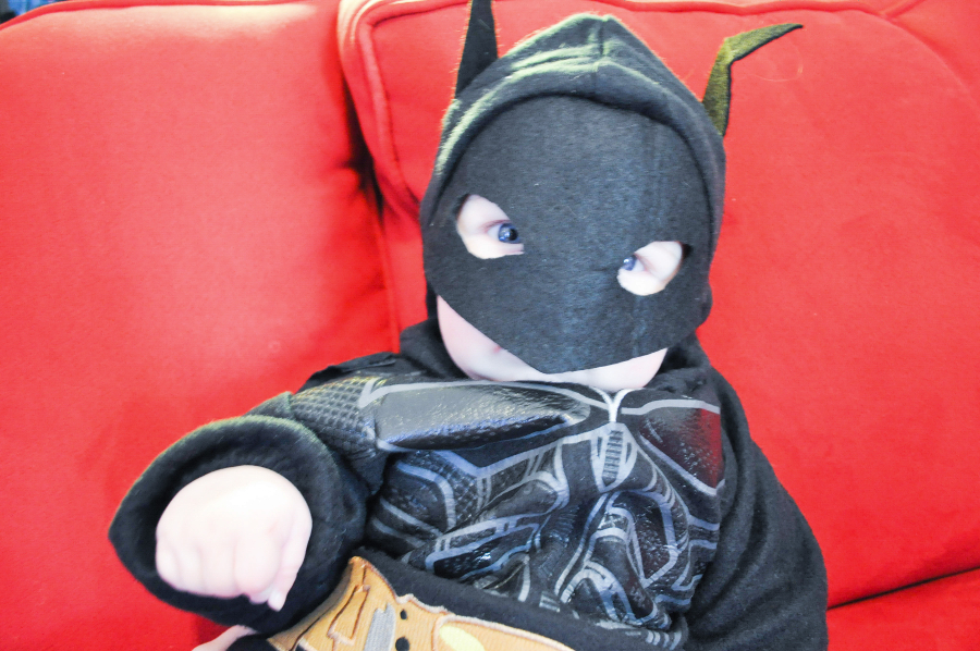 BATMAN. He had no choice on this one. Poor guy. Of course now he loves Batman, but back then I’m sure he had no clue what was going on and why we were dressing him in this ridiculous costume. And just like with Shade’s costume, I chose Batman for him because of his middle name, Arkham. But I’ll write more about their full names later. Maybe he had an idea of who he was dressed up as since he threw a punch at the camera (or at me…) in the last picture.Pastel Carousel - Halloween - Baby Batman CostumePastel Carousel - Halloween - Baby Batman Costume